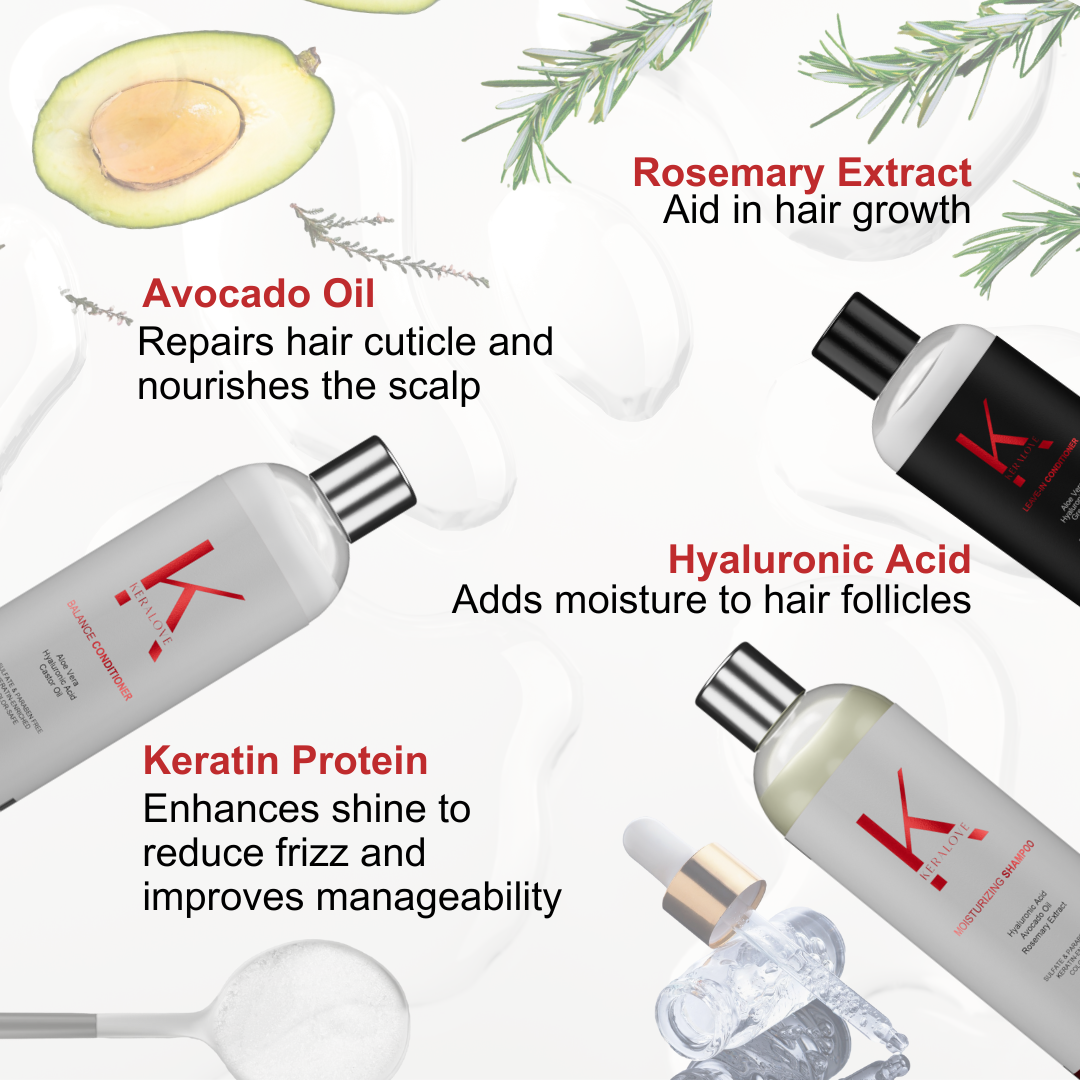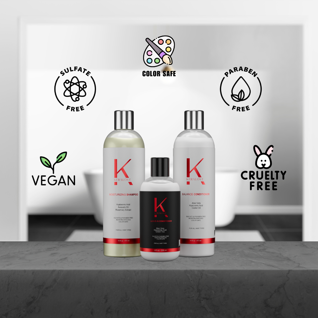 - Contains a Moisturizing Shampoo, a Balance Conditioner, and a Leave-In-Conditioner.