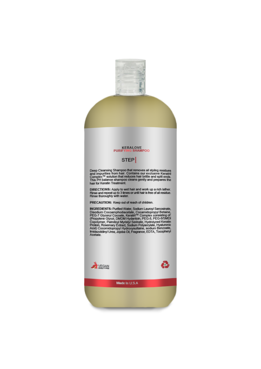 Our Purifying Shampoo removes all styling residues and impurities from hair. Contains our exclusive Keratril complex™ that reduces brittle hair and split ends.