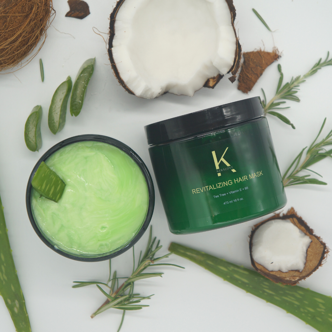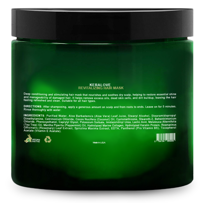 KERALOVE™ deep conditioning and stimulating hair mask that nourishes and soothes dry scalp, helping to restore essential shine and manageability of damaged hair. It helps remove excess oils, dead skin cells, and dirt buildup, leaving the hair feeling refreshed and clean. Suitable for all hair types.